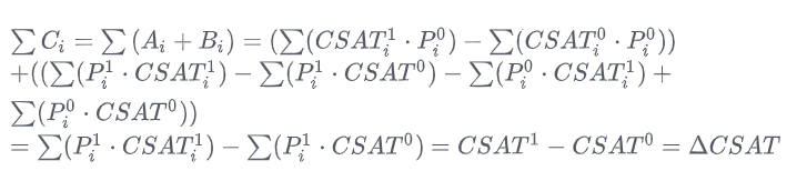 - 分项的结构变化 = 指标占比同比变化值 * (分项本期占比 - 整体上期占比 )