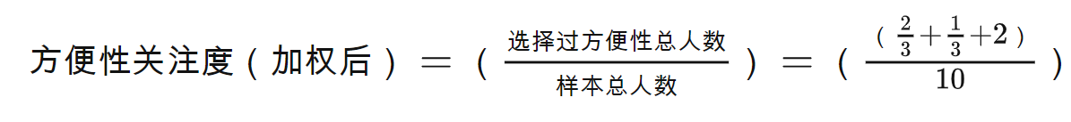 方便性关注度=(所有选择过配送的人数/总样本数)×100%