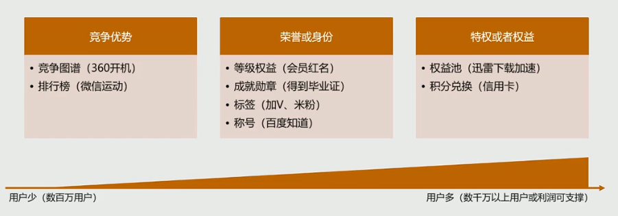 荣誉和身份相对长期,刺激稳定且持续,但是运营维护成本相对高;