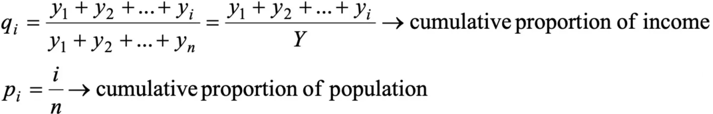 q is the cumulative proportion of income;p is cumulative proportion of population