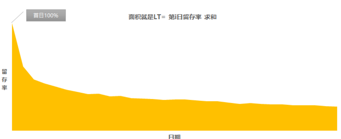 LT=∑Ni=0第i日留存用户数新增用户数,同样根据留存的概念,上述公式等价于:LT=1+N∑i=1第i日留存率。
