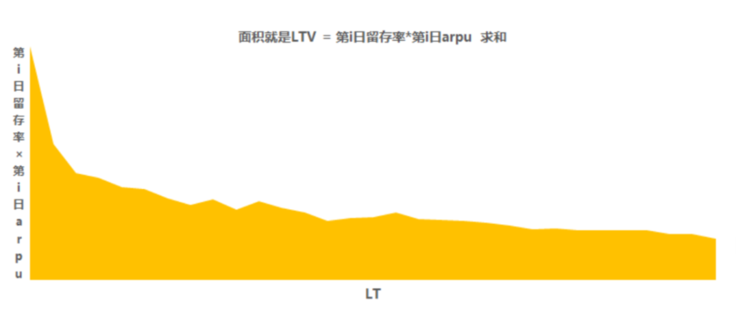 将上述公式变形,可转化为:LTV = 1*首日arpu + 第1日留存率*第1日arpu+...