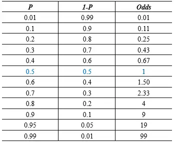 Odds=P/(1-P)