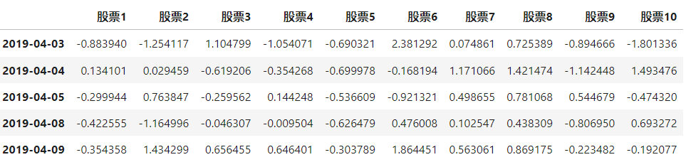 data=pd.DataFrame(stock_change,index=stock_code,columns=date)