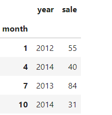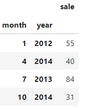month year sale 0 1 2012 55 1 4 2014 40 2 7 2013 84 3 10 2014 31